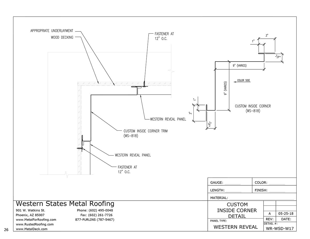 The advantage of this detail is there aren't any seams or exposed rivets. This installation detail is for a vertical wall panel only.