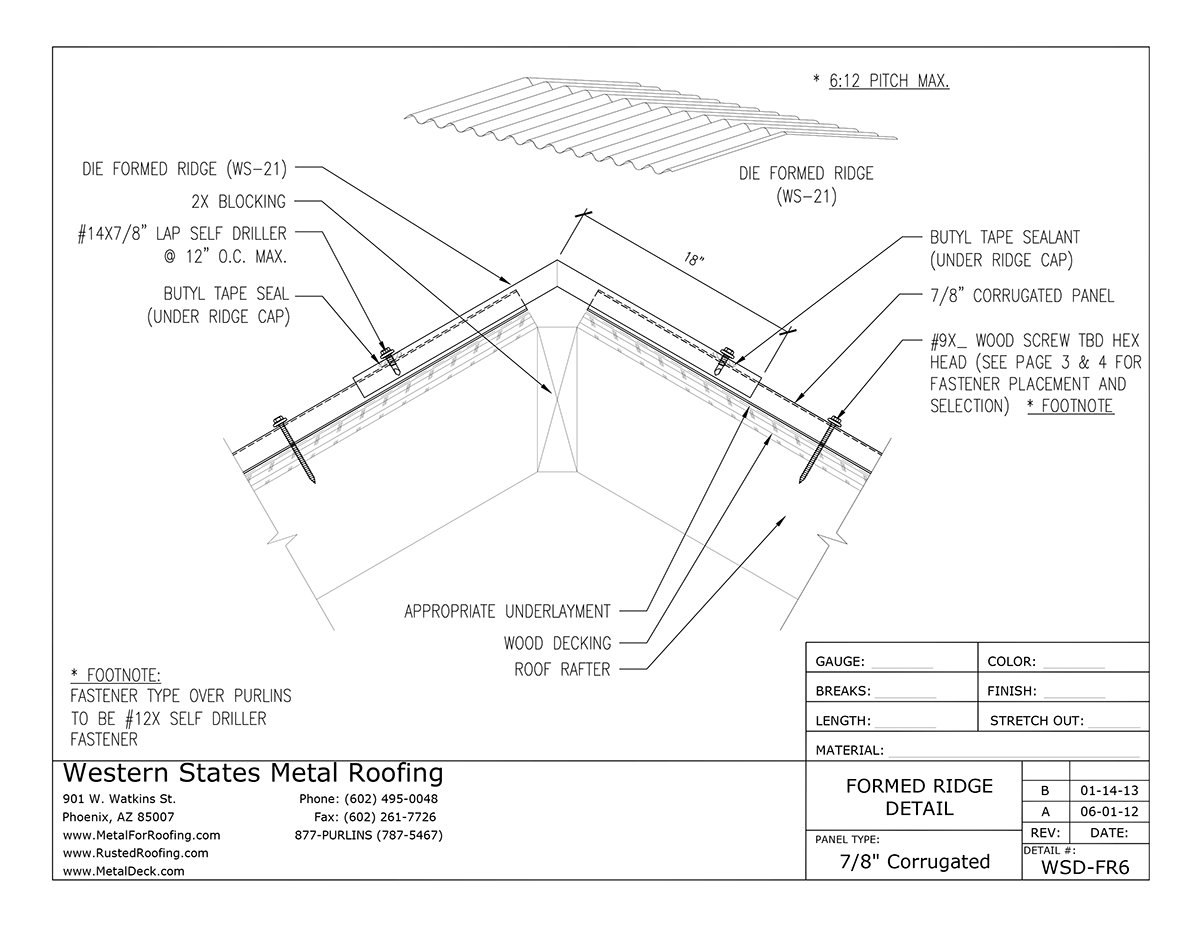 Die formed ridge cap is corrugated to match the profile of the metal roofing panel. It's difficult to install and both ends of the ridge need to line up perfectly or it will not nest. It's not recommended for roofs with a pitch that's greater than 6" in 12"