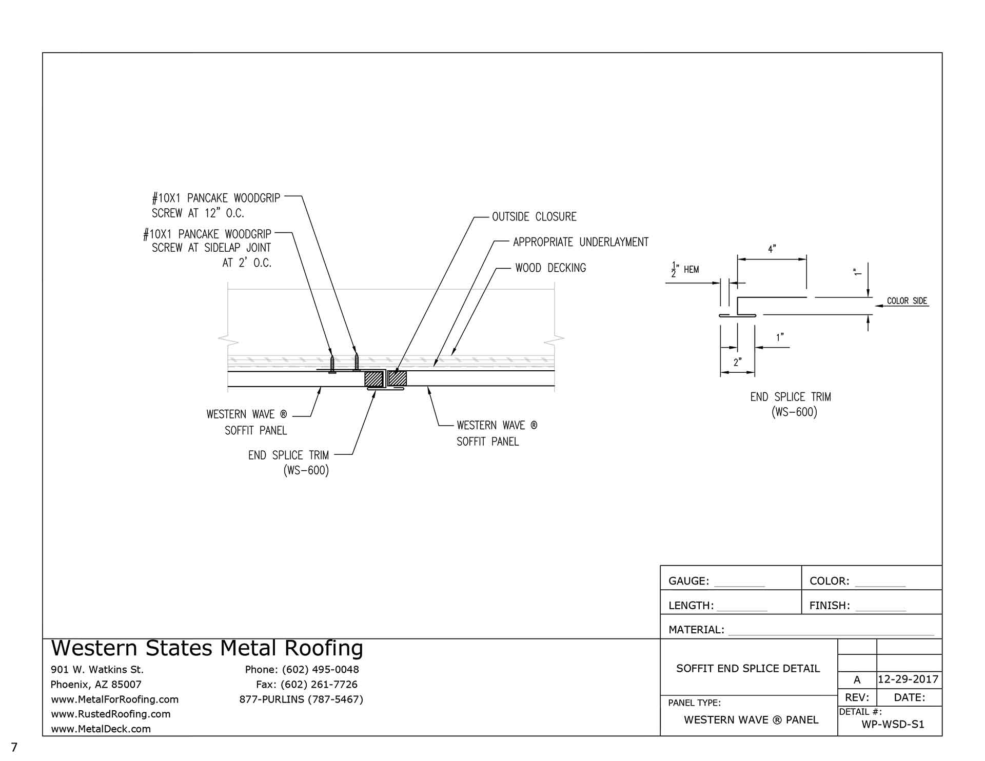 This installation detail is for a metal soffit panel only. It should not be used for metal wall panels.