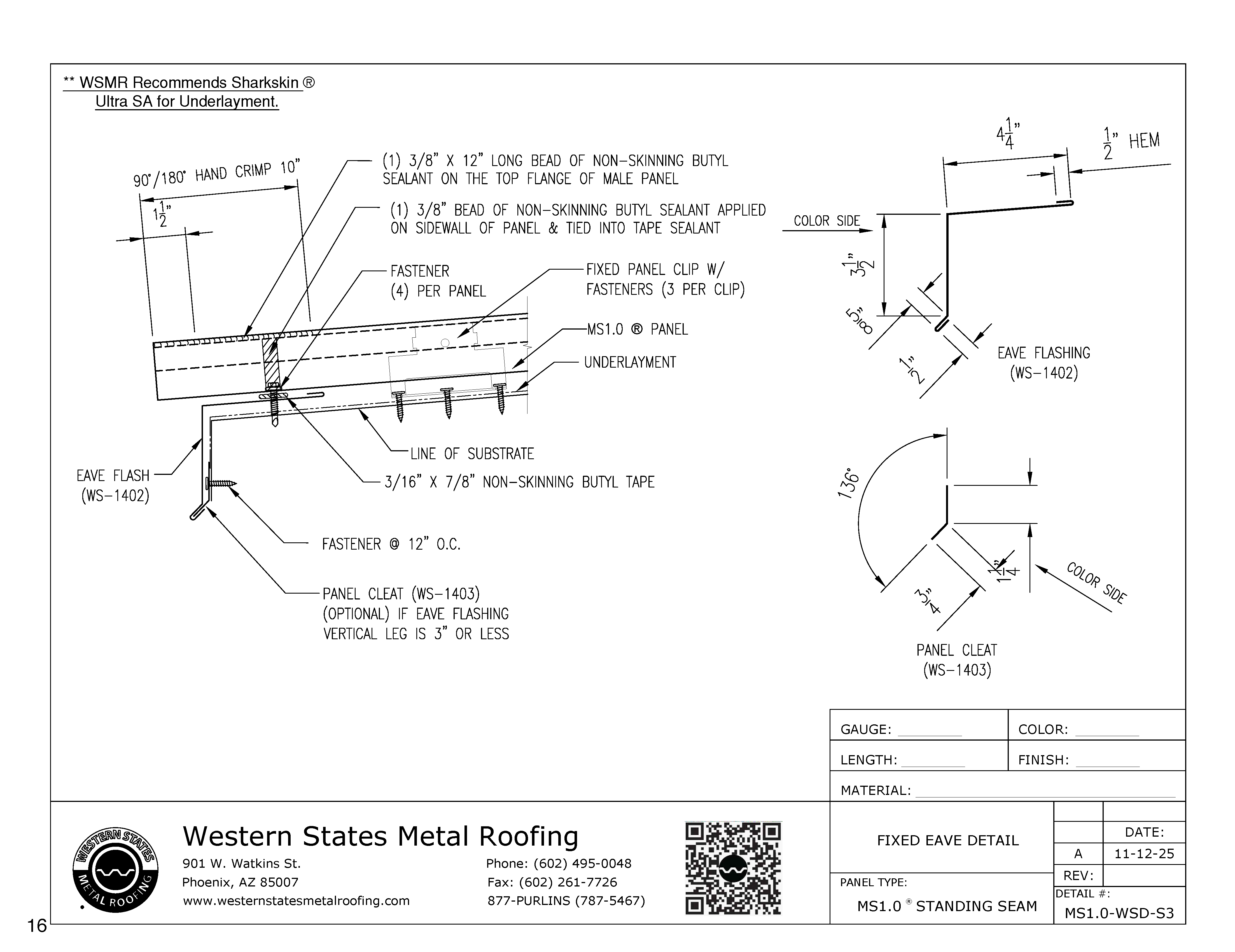 Fixed eave trim is the easiest eave detail to install, but we don't recommend using it. Eave with a bullnose or joggle cleat are better eave details.