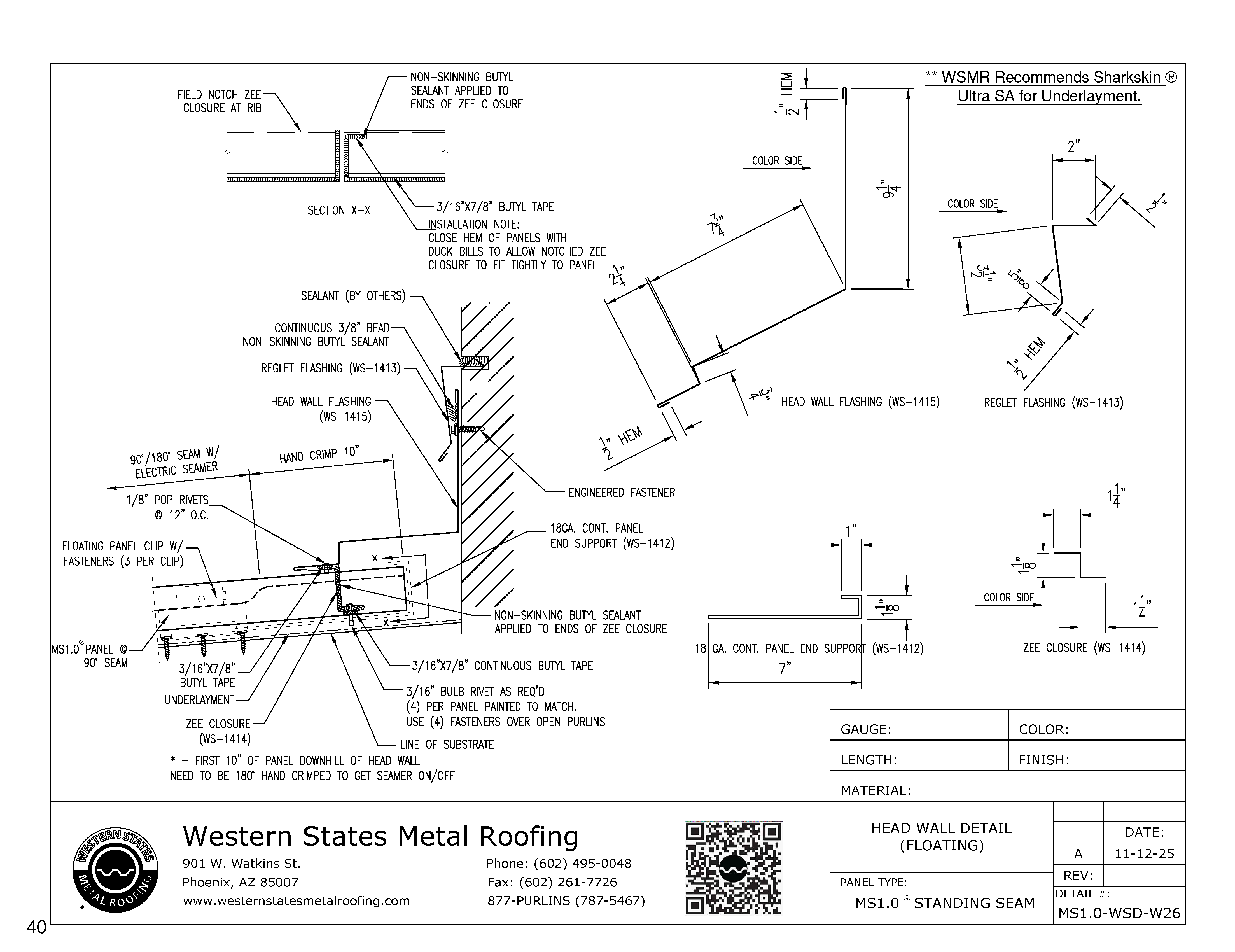 WSMR Recommends the use of a water barrier or underlayment prior to the installation of the trim components or metal roofing panels.