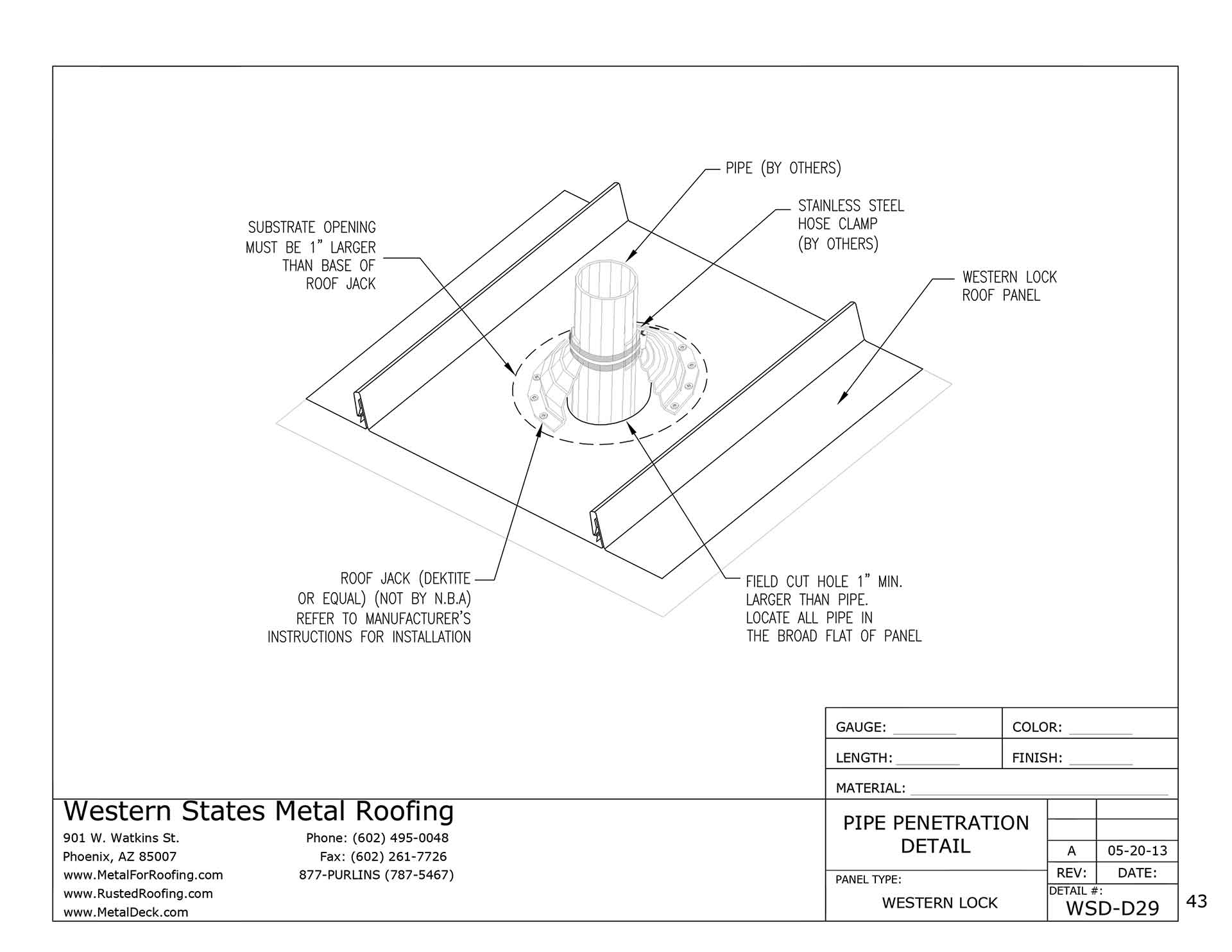2. Plan the layout ahead of time and then cut the standing seam panels so that the pipe penetrations land in the center of the sheet and not on the panel side lap.