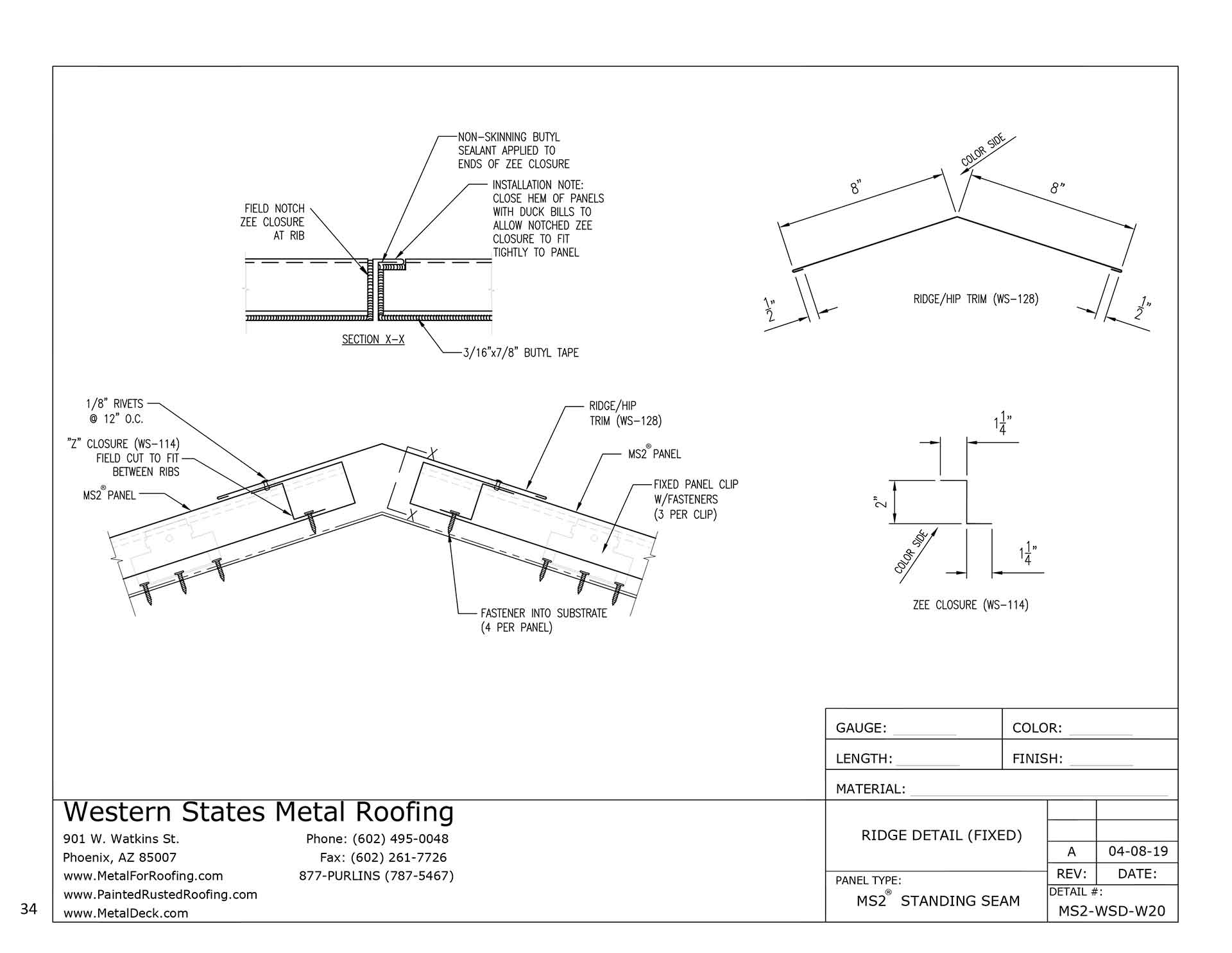 Fixed ridge cap means that the standing seam panels will be pinned in place at the ridge. If you have a fixed point at the ridge, you will need a floating connection at the other end of the standing seam panel. In most instances, this will mean using an eave with a bullnose drip edge or eave with a joggle cleat.