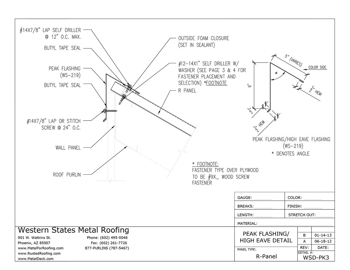 Peak trim is a metal cap for a single slope roof condition that caps off the high end of the slope. Peak flashing acts like a ridge cap to keep water, snow, and ice from getting under the roof. It’s also referred to as high side eave trim.