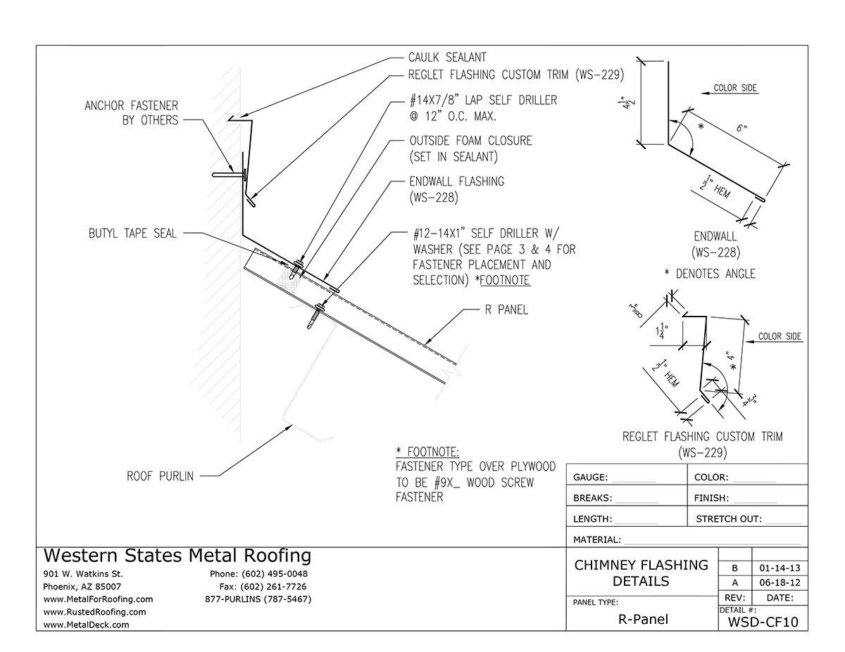Endwall flashing is installed on a vertical wall and then fastens to the top of the metal roofing panel. It's located on the upward slope of the roof and is bent to the same pitch. The purpose of endwall trim is to help control the flow of water which will protect your structure. It can be installed with or without a reglet trim.
