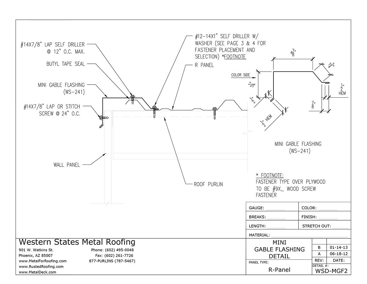 Mini gable or rake trim is installed on the high side of the roof. Step by step installation instructions that include cutting and finishing the gable flashing at the eave and the peak, overlapping, and fastening.