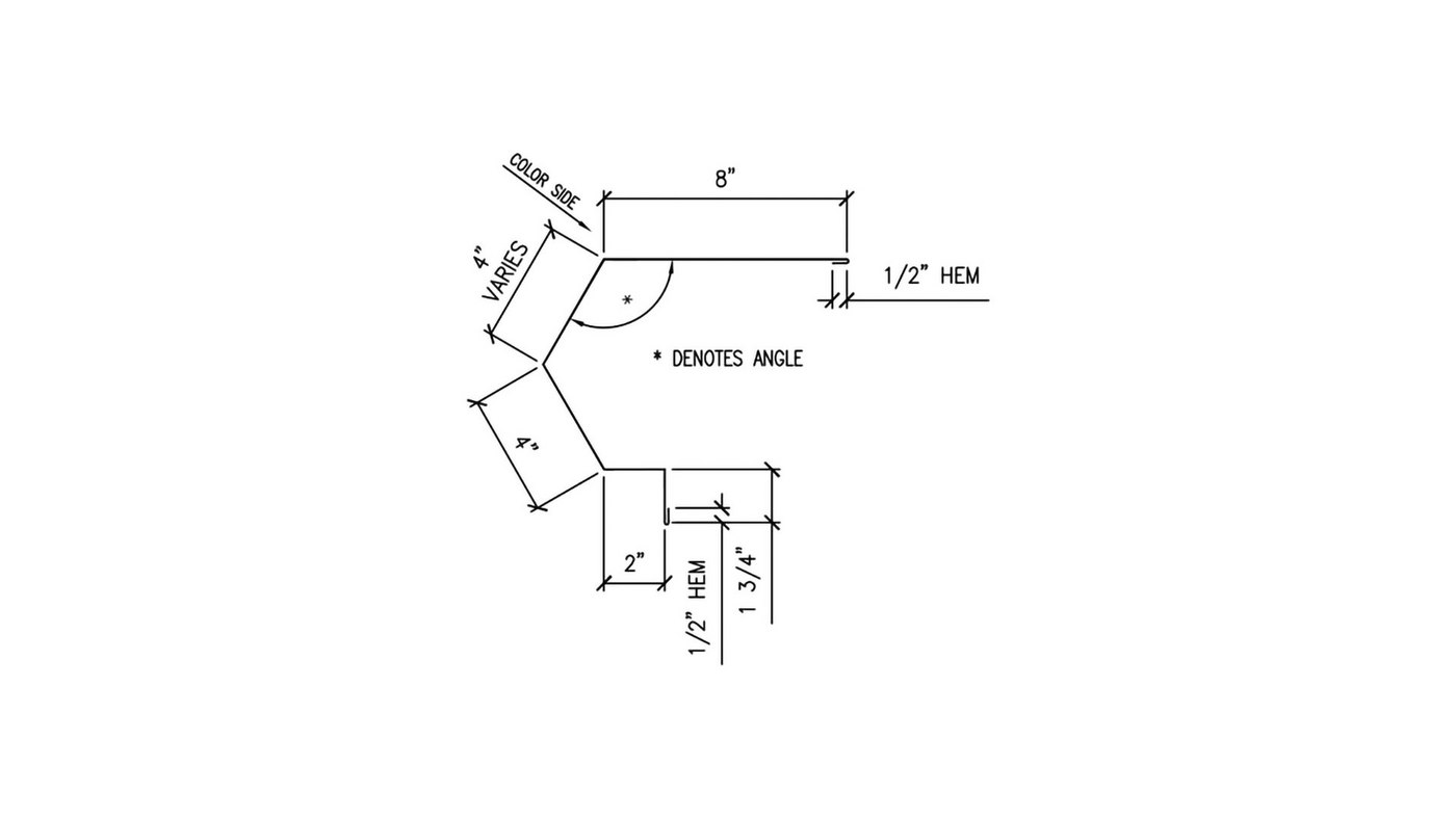 Eave trim is the metal flashing that covers the low side of the building. Simply put, it’s installed on the side of the building that follows the pitch of the roof. Eave trim is used when a gutter is not required. The bottom leg of the eave trim has a kick out that is designed to keep water away from the wall. Eave trim is also referred to as drip edge or eave flashing.