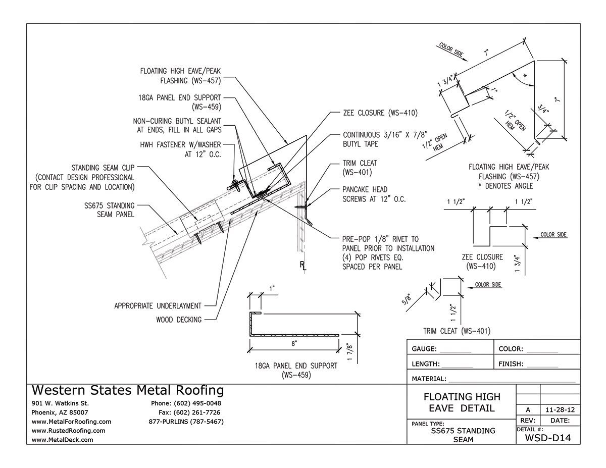 Floating peak trim means that the standing seam panels aren't pinned in place at the peak/high eave. This allows for expansion and contraction. If you have a floating peak, you will need a fixed connection at the other end of the standing seam panel.