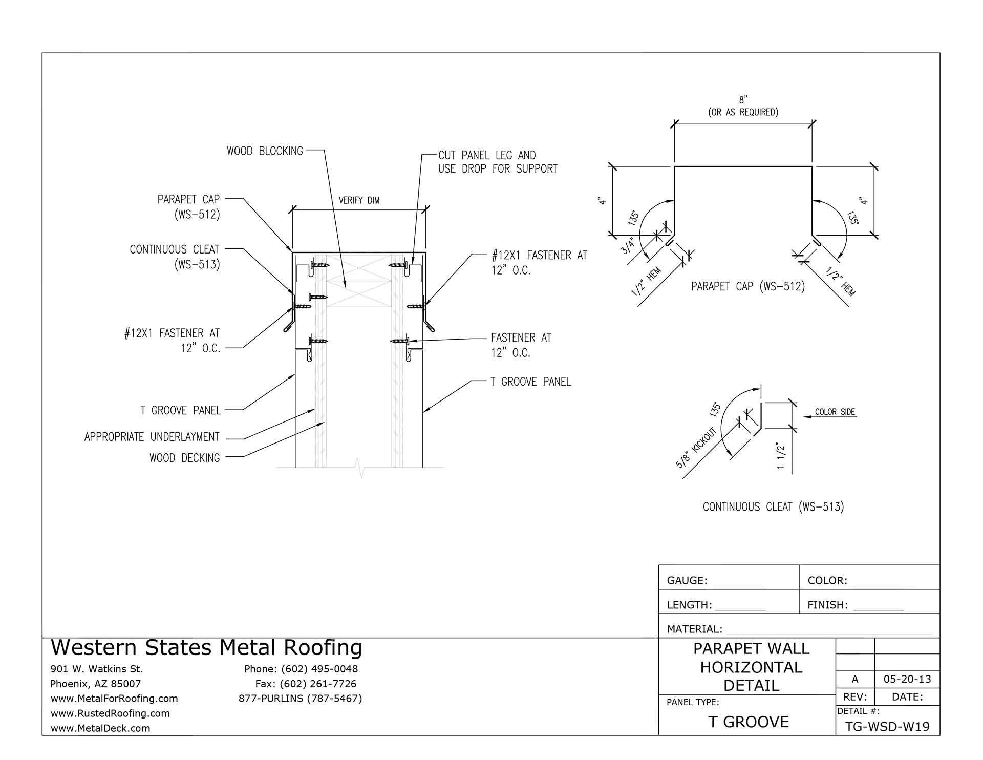 Trim cleat is a continuous piece of metal that's designed to hold the ends of the parapet cap in place. The hem at the drip edge of the parapet cap will hook into the trim cleat.