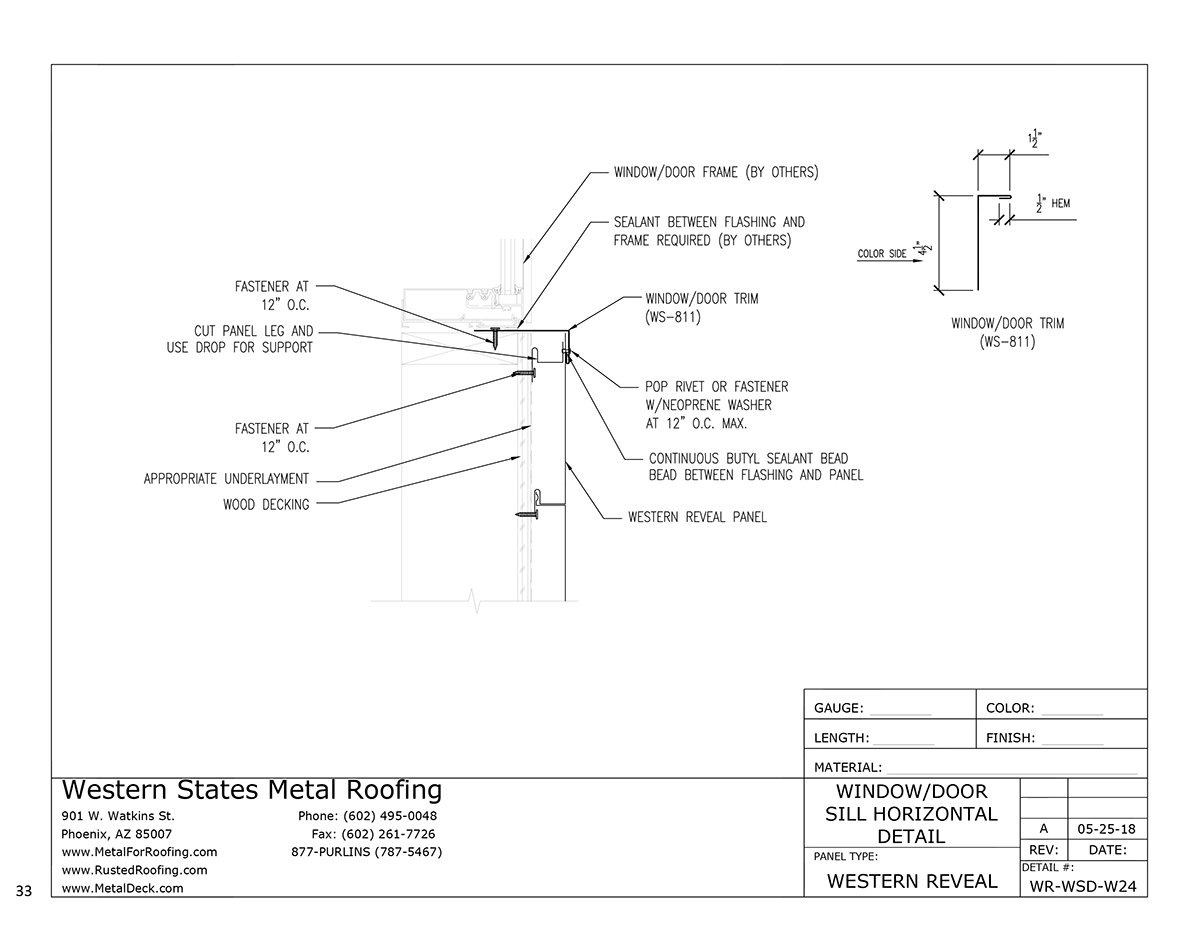 Sill trim will be installed along the bottom of a window or door opening. This installation detail is different when the panels are installed vertically versus horizontally. This installation detail is for a horizontal wall panel only.