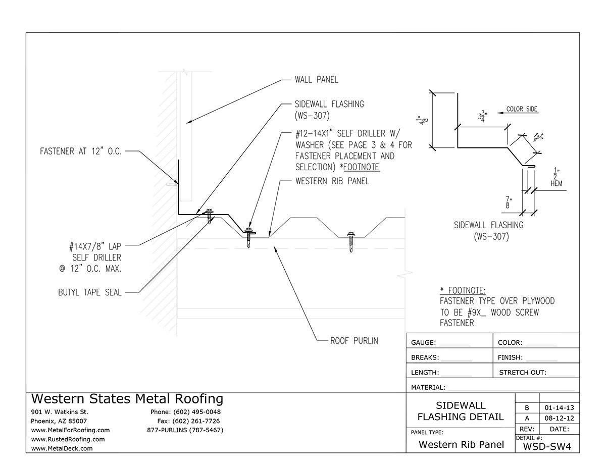 Sidewall flashing is installed on a vertical wall on the gable side of a metal roof. The purpose of sidewall trim is to keep the water from dripping down the wall and leaking into the roof. It can be installed with or without a reglet trim.