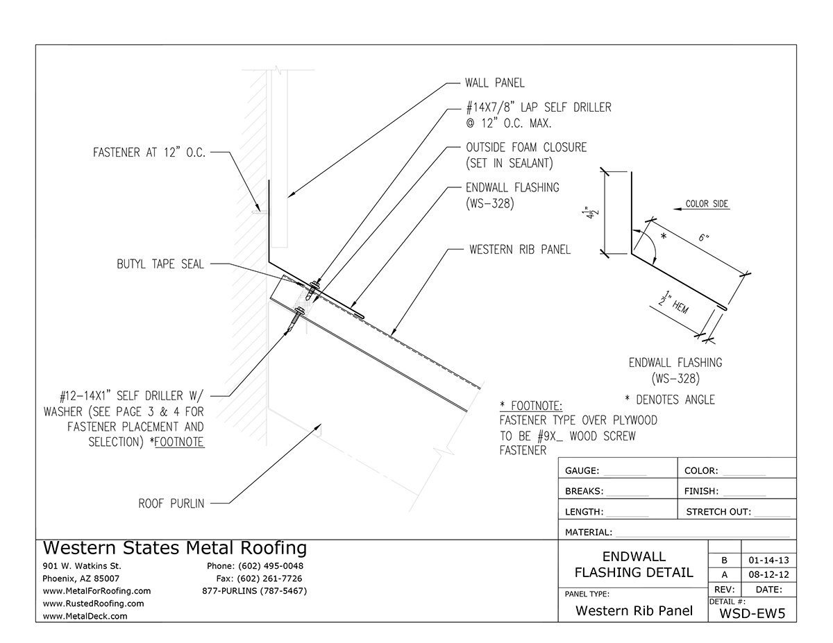 Endwall flashing is installed on a vertical wall and then fastens to the top of the metal roofing panel. It's located on the upward slope of the roof and is bent to the same pitch. The purpose of endwall trim is to help control the flow of water which will protect your structure. It can be installed with or without a reglet trim.