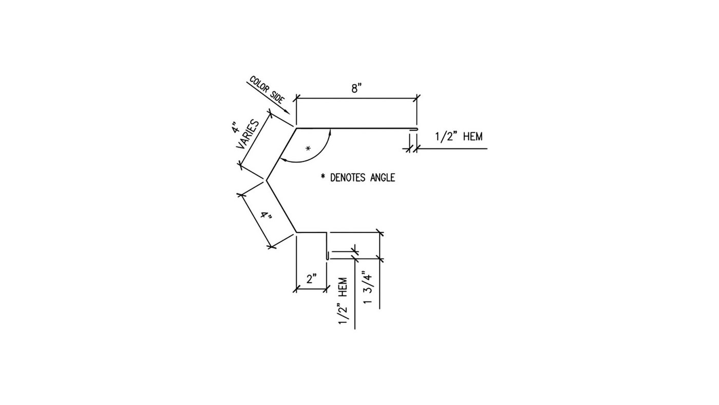 Eave trim is the metal flashing that covers the low side of the building. Simply put, it’s installed on the side of the building that follows the pitch of the roof. Eave trim is used when a gutter is not required. The bottom leg of the eave trim has a kick out that is designed to keep water away from the wall. Eave trim is also referred to as drip edge or eave flashing.